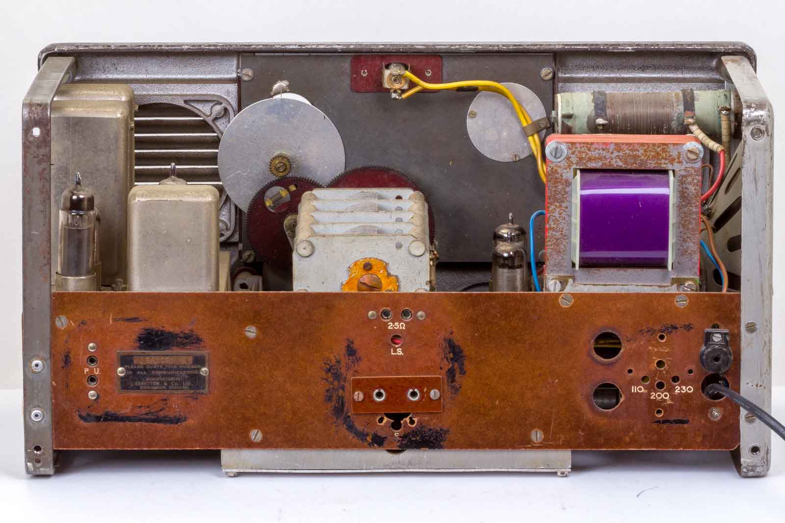 Dew achterkant. Waar nu een scheidingstrafo staat was vroeger een seleengelijkrichter en een grote serieweerstand voor de gloeispanning. De trafo is wel een stukje veiliger!