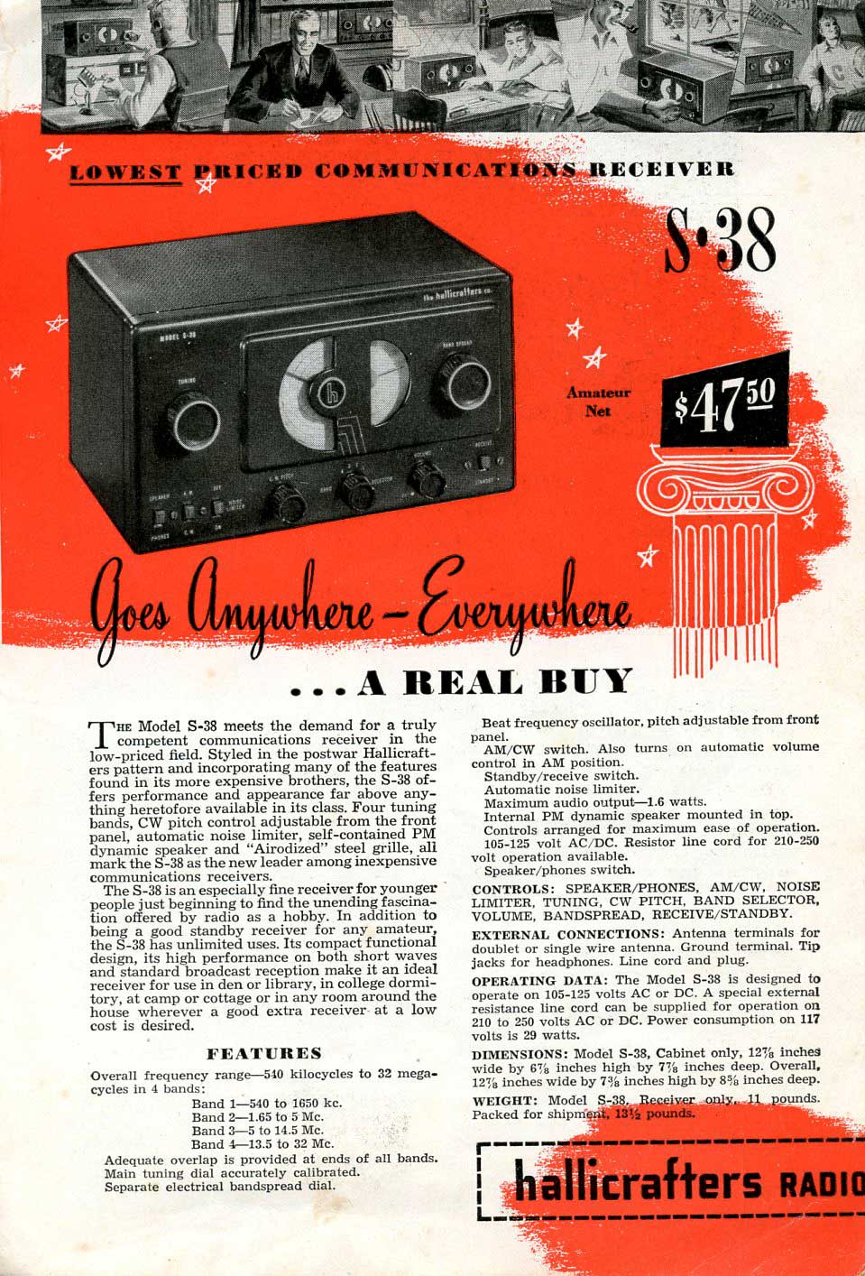 Vanuit het oogpunt "verzamelen", is de S-38 lijn is een goede manier om te beginnen met "boatanchors." In de eerste jaren na de tweede wereldoorlog zijn er enorme aantallen vervaardigd en er zijn er nu nog steeds veel. Je kunt in Amerika vaak een goed exemplaar voor minder dan $ 50 kopen, maar dan komen er gigantische verzendkosten bij. Een mooie eigenschap van de S-38 is de mogelijkheid om snel over de banden te kunnen draaien om te zien wat voor stations er waar in de lucht zijn. Een tekortkoming is een goede S-meter en de antenne-trimmer die je bij de betere radio's wel aantreft. De oerversie S-38 was er weer in twee varianten. Bij de eerste waren de buizen wat anders opgesteld als bij de tweede. De BFO-buis was bij de latere versie wat dichter bij de BFO-pitch-regelaar geplaatst. Verder was de hoofdtelefoonaansluiting op de achterkant meer naar rechts gezet. De luidspreker-aansluiting was in de eerste uitvoering met een stekker en een entreetje op het chassis uitgevoerd, bij de andere direkt gesoldeerd aan de luidspreker. De modellen S38-A en daarop volgende modellen missen de noiselimiter en de BFO. CW-ontvangst is mogelijk gemaakt door een MF-signaal terug te koppelen, zodat de zaak op het randje van genereren zit. Geen fraaie oplossing. Doordat de 12SQ7GT van de BFO ontbreekt, zijn ook de twee voor de noiselimiter gebruikte dioden niet meer beschikbaar.