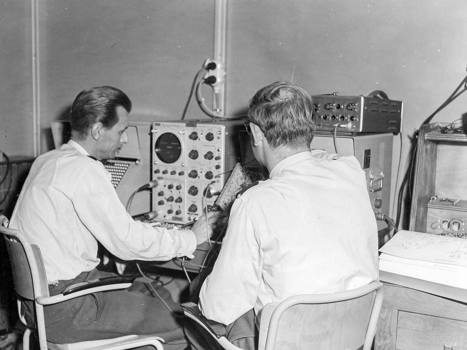 Met een mooie Tektronix oscilloscoop. Als die dingen aanstonden kon je de verwarming wel uitschakelen.