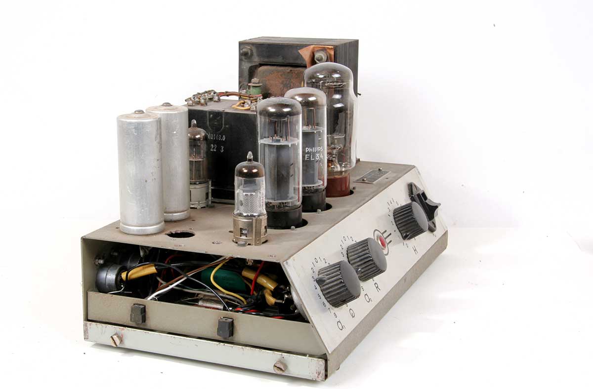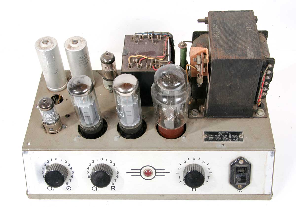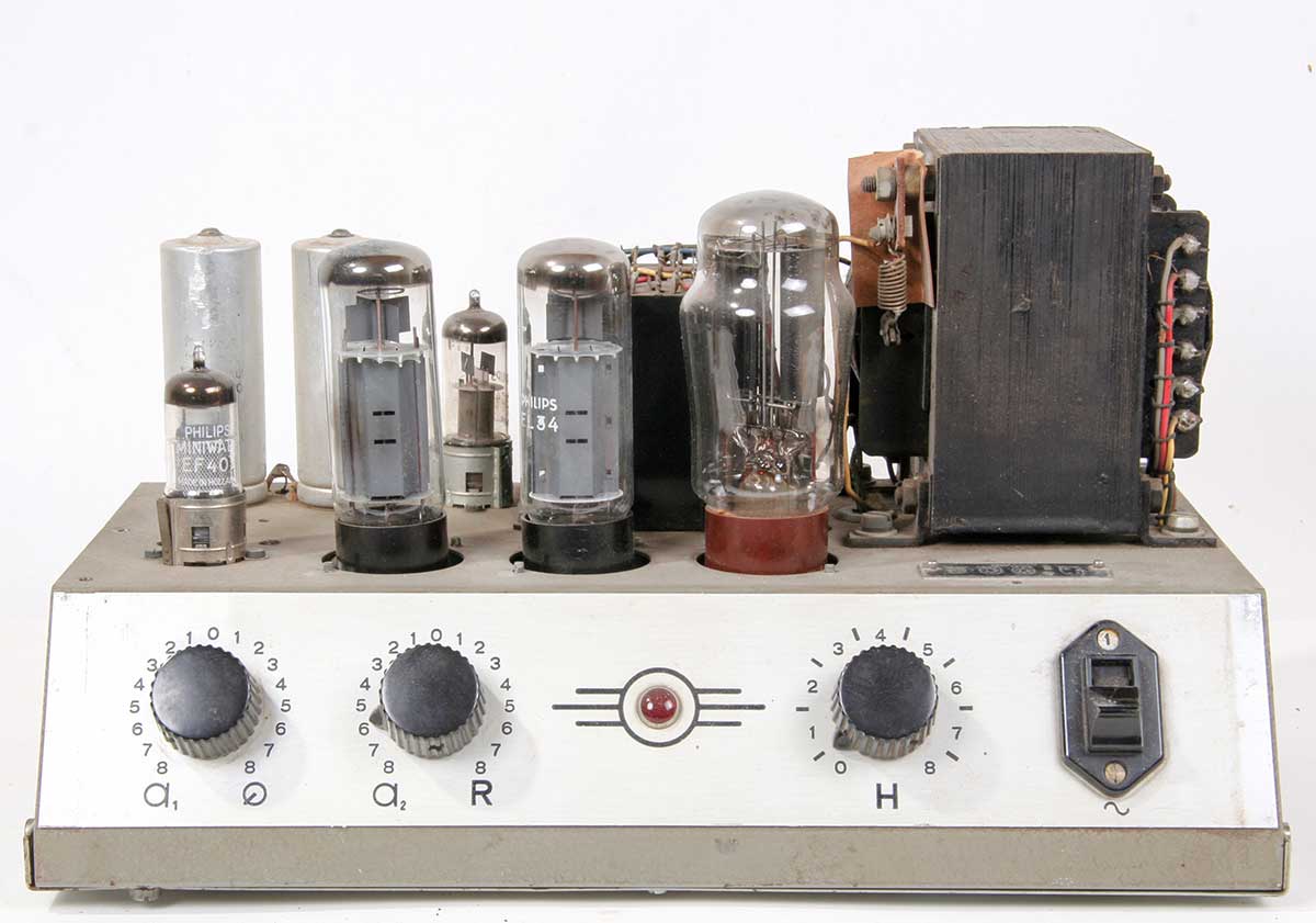 Vooraanzicht met EF40, EL34's en AZ50.