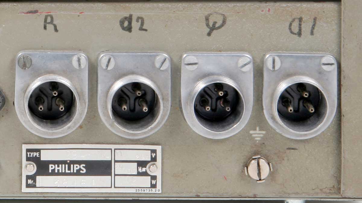 De vier ingangsconnectors en het type-plaatje.