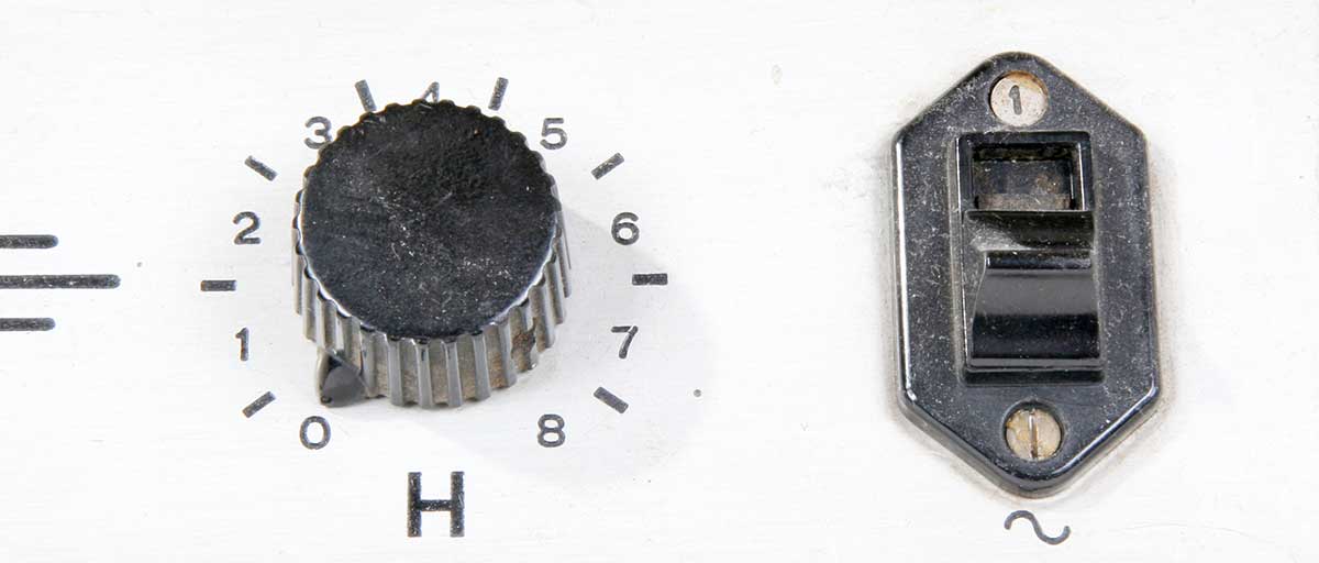 Op deze foto de toonregeling en de aan/uit-knop.