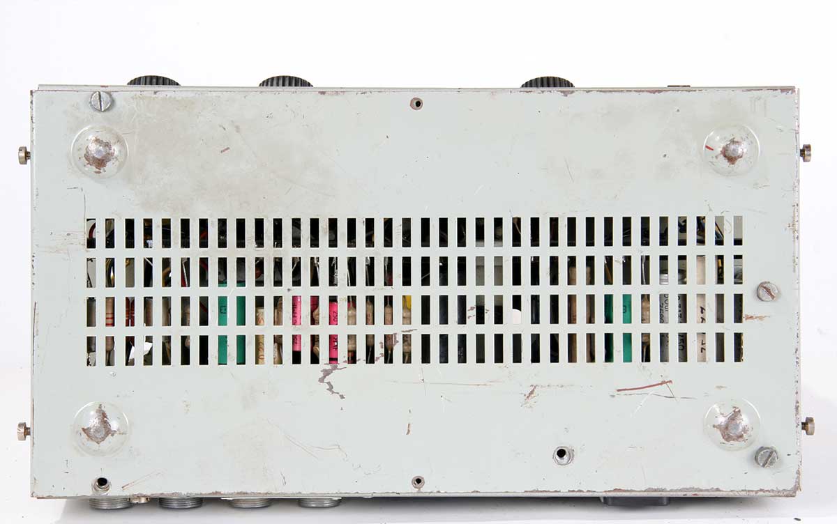 De versterker, gemonteerd in een stalen kast met een afneembare kap, weegt 8,75 kg.